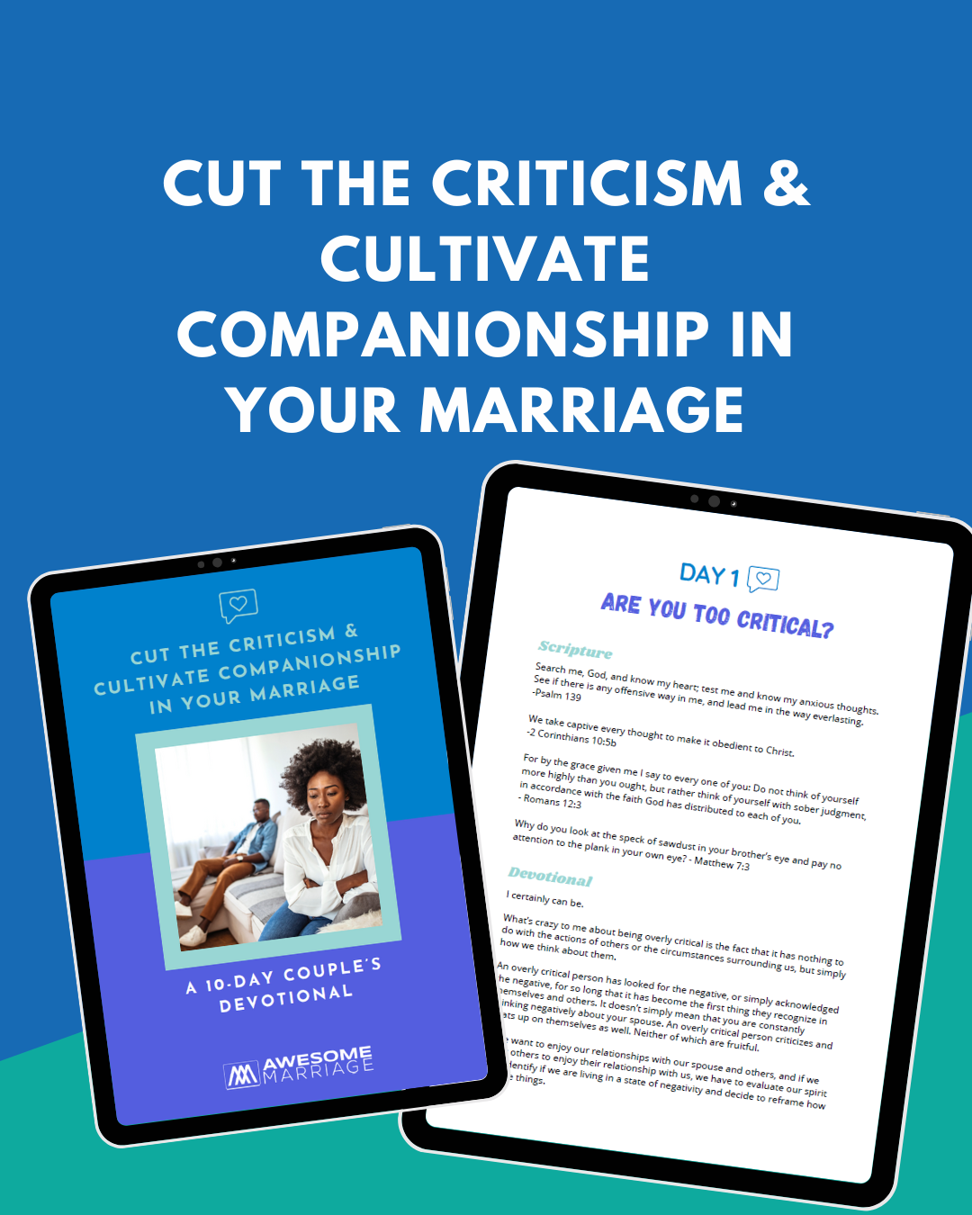 Whether it’s you criticizing your spouse OR it’s them being too critical of you- it’s a REAL PROBLEM and this 10-Day Couple’s Devotional is a practical solution.