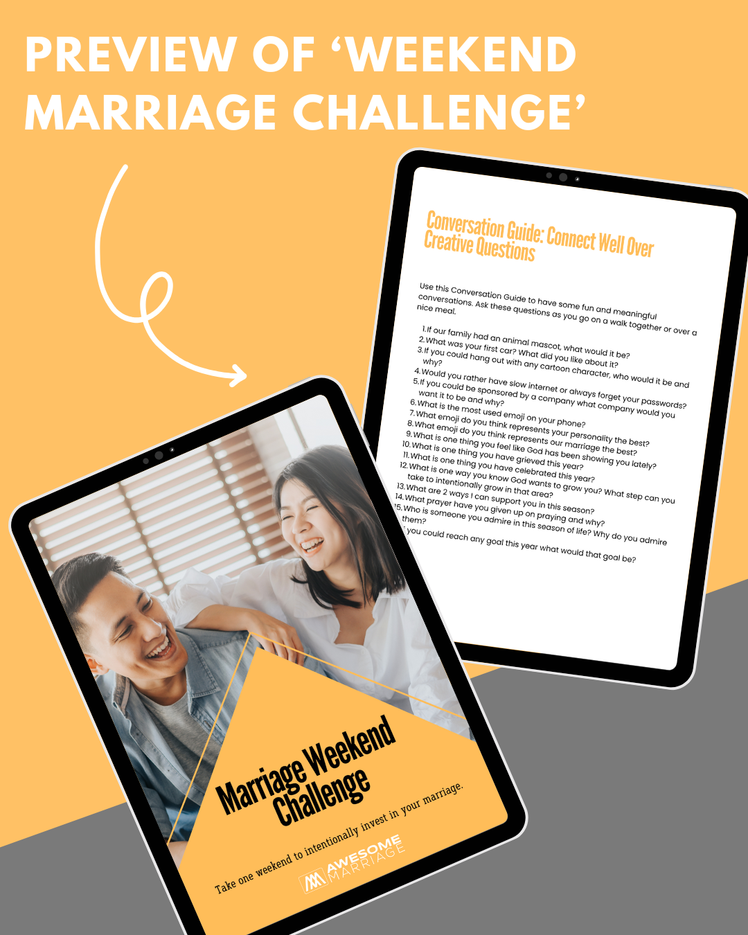 An awesome marriage doesn't happen by accident. It takes time and intention…which is why we created this simple but powerful weekend challenge.